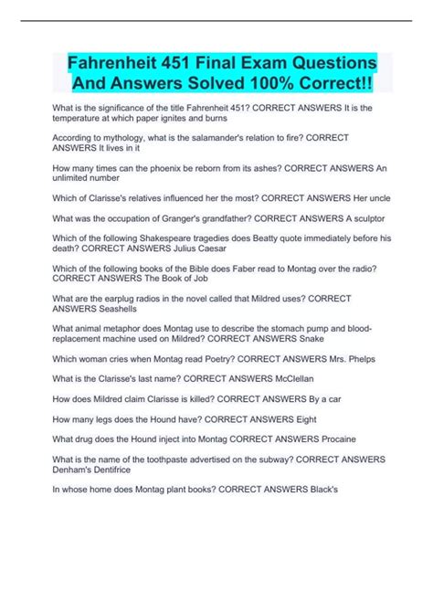 Title: - answers to study guide questions for 451 farenheit part 2