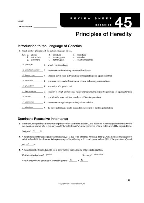 Related Book : exercise 45 principles of heredity answers