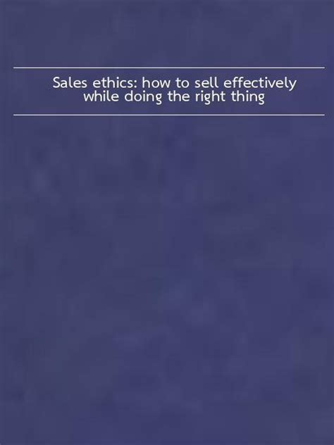 Related Book : sales ethics how to sell effectively while doing the right thing